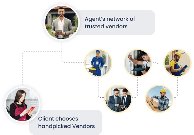 Skip the guesswork. Get secure, branded access to your agent’s trusted network of vendors — all in one place.